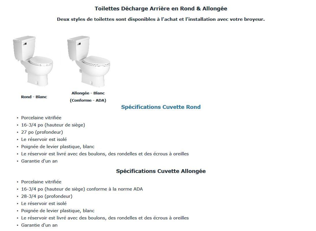 Note: Dans les installations commerciales ou publique, le code exige l'utilisation d'une cuvette allongée.